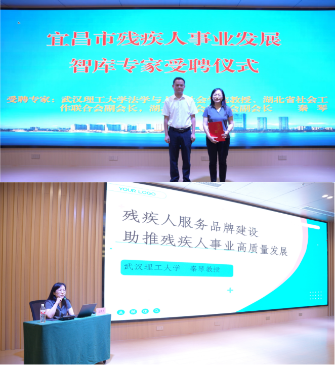 下午,秦琴教授受邀为宜昌市残联机关及各直属单位负责人、社会组织负责人作题为《残疾人服务品牌建设,助推残疾人事业高质量发展》的专题报告。报告开始之前,宜昌市残联举行了智库专家受聘仪式,邀请秦教授为宜昌市残疾人事业高质量发展献计献策。随后,秦琴教授立足“品牌—服务—治理”三维视角,系统阐释了残疾人服务品牌的内涵、价值及建设路径,结合浙江、广东等地典型案例,提出“需求精准画像、资源多元整合、服务持续迭代、品牌长效传播”四步工作法,为宜昌打造具有长江三峡特色的残疾人服务品牌提供了可操作、可复制的行动方案。报告结束后,秦琴教授与参会人员就基层服务创新、数字化赋能、助残社会组织培育等热点问题进行了深入交流。