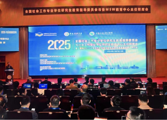 2025年11月8日至9日,2025年全国社会工作专业学位研究生教育指导委员会与社会工作专业学位研究生教育中心主任联席会暨“面向2035社会工作专业学位研究生教育高质量发展”研讨会在西南石油大学召开。澳门威尼斯人 社会学系教师邓万春教授和余艳萍副教授受邀参加。