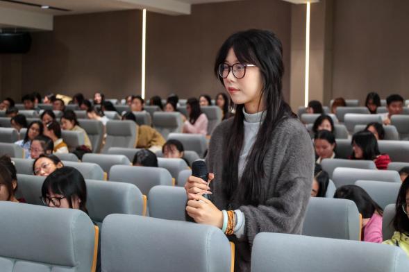 师生交流环节在座学生反响热烈,踊跃发言,虚心求教。孙老师与龚老师跟学生进行深入的交流和探讨,耐心细致地回答学生的问题。她鼓励学生珍惜在校学习的时光,不断提升自己的专业素养和综合能力,为未来的职业生涯打下坚实的基础。