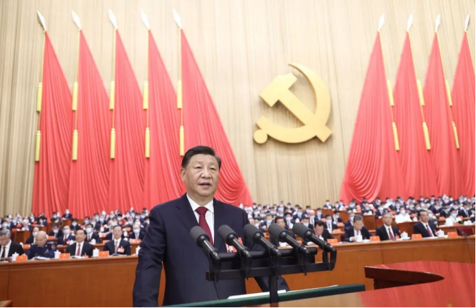 2022年10月16日,中国共产党第二十次全国代表大会在北京人民大会堂开幕。习近平代表第十九届中央委员会向大会作报告。新华社记者 鞠鹏 摄