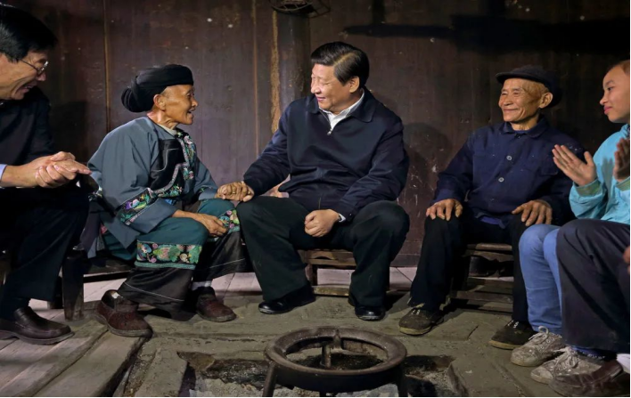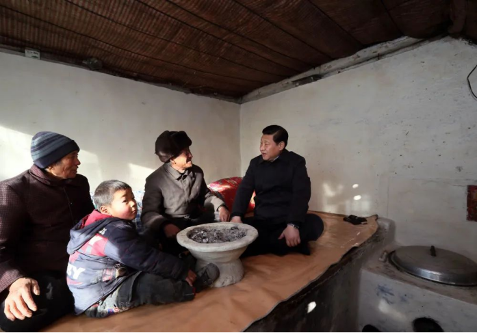 2012年12月底,任总书记一个多月,习近平就走进河北阜平贫困户家中看望,盘腿坐在炕上,同乡亲手拉手,详细询问生活情况。此行,他向全党全国发出脱贫攻坚动员令。在中共二十大召开前两个月,习近平走进辽宁沈阳一个改造后的老旧小区,关心居民的日常生活。