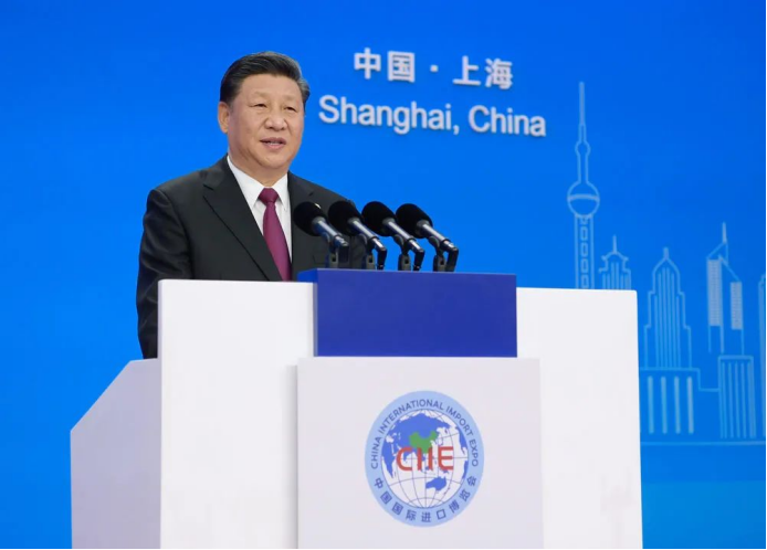 2018年11月5日,首届中国国际进口博览会在上海开幕。习近平出席开幕式并发表题为《共建创新包容的开放型世界经济》的主旨演讲。新华社记者 李学仁 摄