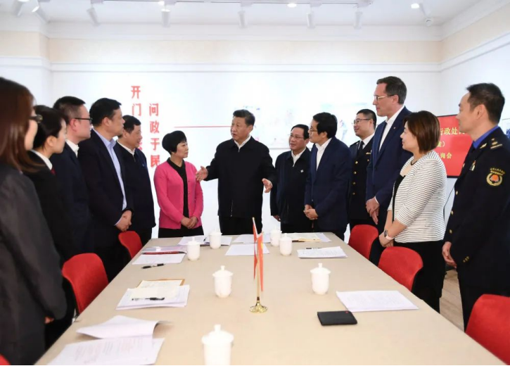 2019年11月2日,习近平在上海市长宁区虹桥街道古北市民中心,同参加法律草案意见建议征询会的中外居民亲切交谈,详细询问法律草案的意见征集工作情况。新华社记者 谢环驰 摄