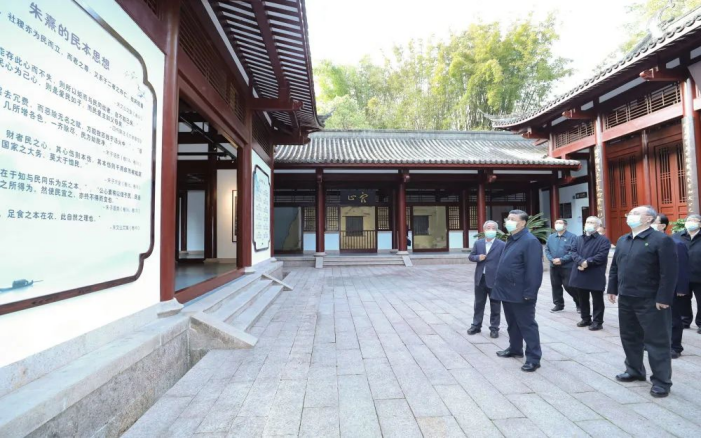 2021年3月22日,习近平在福建省南平武夷山朱熹园,了解朱熹生平及理学研究等情况。新华社记者 鞠鹏 摄