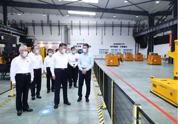2022年8月17日,习近平在辽宁省沈阳新松机器人自动化股份有限公司生产车间考察。新华社记者 鞠鹏 摄