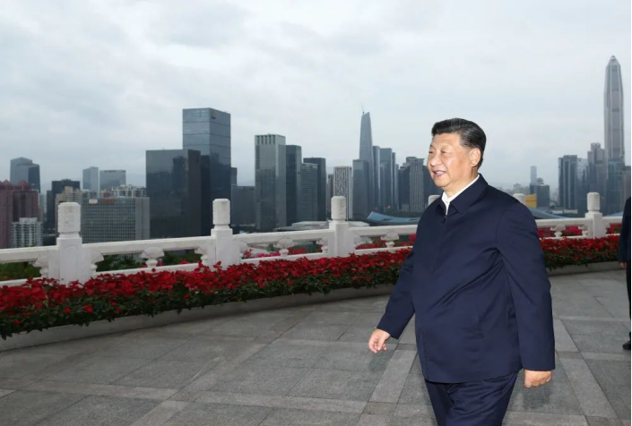 2020年10月14日,习近平在广东省深圳市莲花山公园远眺特区新貌。新华社记者 鞠鹏 摄