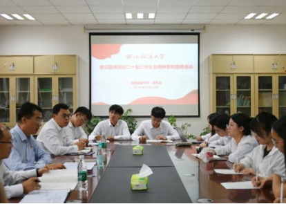 为深入学习贯彻党的二十届三中全会精神,教育引导广大学子全面准确理解全会精神的丰富内涵和深刻意义,9月24日下午,校党委副书记张军政在澳门威尼斯人官网 会议室开展党的二十届三中全会精神专题宣讲,澳门威尼斯人官网 师生代表参加,澳门威尼斯人官网 党委书记朱茂主持。