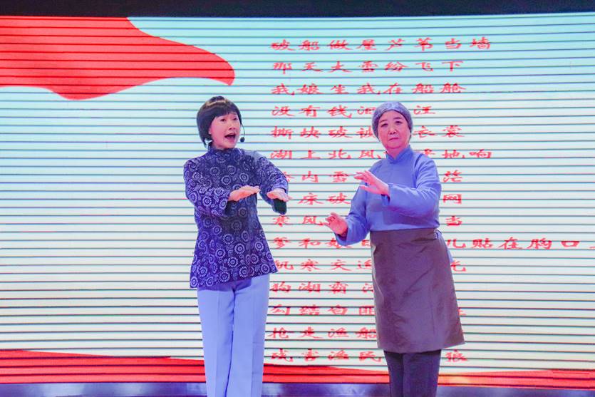 澳门威尼斯人官网 戏曲研究会的李婷丽、张敏莉老师带来了秦腔表演《娘的眼泪似水淌》,二人默契的配合生动再现了当时的情景,表现出母女之间深厚的感情和她们对中国共产党、对祖国的热爱。