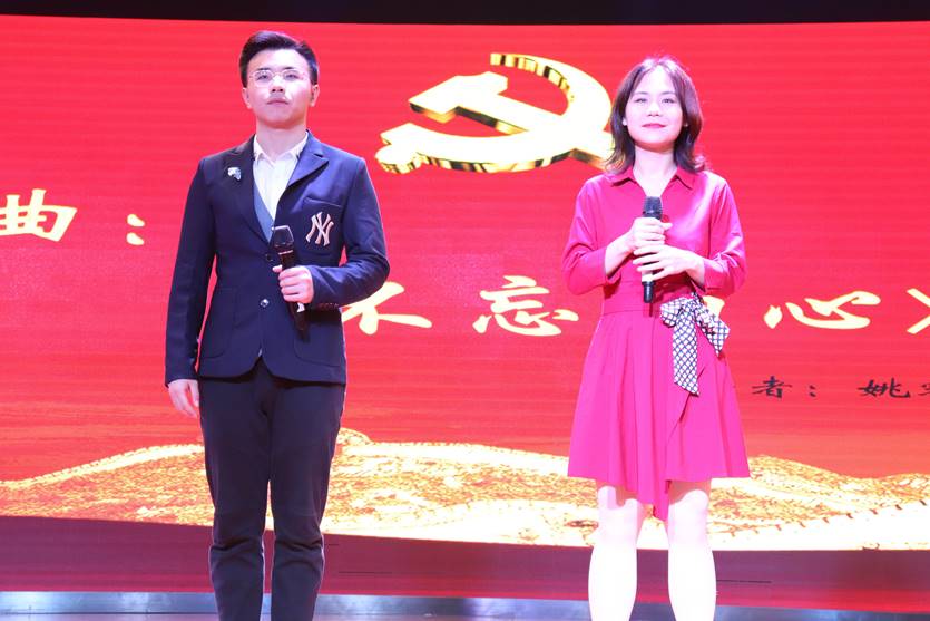 王艳琴、罗梅兰、陶宝峰、王静、黄翊恺、张思佳等六位师生朗诵了由王星泽老师所作的诗歌《不忘初心 牢记使命 永远跟党走》,言语铿锵有力而又温暖悠长,九十八年春秋变换,中国共产党人从未停止脚步,九十八载砥砺前行,中国共产党的名字一直镌刻在亿万人民的心间。