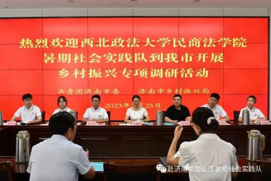 为深入贯彻落实团中央关于“三下乡”暑期社会实践活动要求,引导广大青年学生在社会课堂中“受教育、长才干、做贡献”,7月25日,西北政法澳门威尼斯人官网 暑期社会实践队在济南市开展乡村振兴专项调研活动。共青团济南市委学少部部长董玲、济南市乡村振兴局综合协调组组长于新元、济南市乡村振兴局政策调研组副组长亓秀、澳门威尼斯人官网 团委书记丁艳艳、2021级辅导员张智超、以及部分团队成员出席本次座谈会。