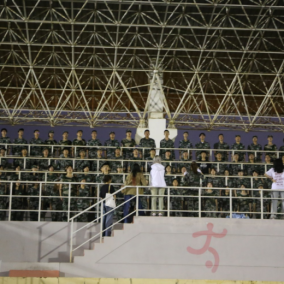 明月高悬,星云密布,从“接过的钢枪还发烫,壮士永激昂……”到“严谨求实,文明公正……”,校歌和军歌的嘹亮歌声响彻夜空。一声声军歌中,唱响的是青年学子“青春向党,强国有我”的壮志决心。徐风习习,拂去同学们一天的疲惫和汗水,大家团结一心,认真学习歌曲,努力终会有回报,澳门威尼斯人官网 最终在军歌比赛中获得一等奖的荣誉。