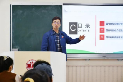 张超老师从国考岗位分数分析、国省考岗位介绍及对比、国考判断高频考点及题型三方面,为同学们具体讲解在国省考备考中的一些重要的信息和相关的解题技巧。他从亲身的考公经历出发,指出了个人在备考过程中可能会遇到的问题。同时,也结合自己的工作实况,向大家讲述公务员的现实生活,为同学们提供更加长远的规划指南。