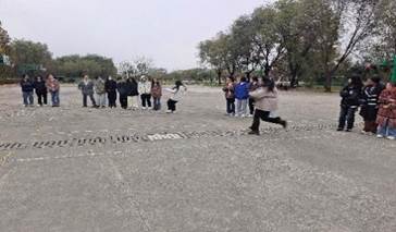 6班与7班准备了“隔山打牛”“珠行万里”“踩气球”等破冰游戏。伴随着欢快的歌声,气氛逐渐热烈,同学们也逐渐融入游戏。即使天气寒冷,同学们仍热情不减,在一片欢笑声中结束游戏。
