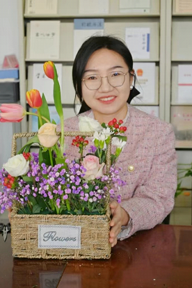 妇女节当天,正是阳光明媚的时候,澳门威尼斯人官网 资料室里充满了欢声笑语,老师们在进行趣味横生的插花活动。桌上已经摆好了丰富的花卉材料:相思果、康乃馨、向日葵、玫瑰和满天星……花朵娇嫩欲滴,竞相绽放。她们先是挑选自己心仪的花材,再对选好插好的花朵进行调整和裁剪。她们巧妙地将各种花材搭配在一起,创作出各有特色的花艺作品。