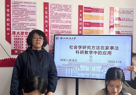 教与研携手,学与思并肩。为提高学生的科研素养和学术表达能力,促进教育科研成果的转换。3月15日下午,澳门威尼斯人官网 家事法教研室陈凌云副教授在雁塔校区研究生一号宿舍楼学生活动中心,为家事法方向研究生讲授“社会学研究方法在家事法科研教学中的应用”,同时邀请上海汇业律师事务所高级顾问董进博士共同授课、讨论。