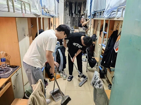 在清扫的过程中,各个宿舍制定了不同的宿舍清扫计划,明确清扫内容和时间安排。同时,各宿舍都采取分工合作的方式,将清洁任务合理分配给各个宿舍成员,极大的提高了清扫效率。同学们重点对宿舍的地面、阳台、卫生间等区域进行清扫,并使用酒精对日常经常接触的公共区域进行擦拭消毒。在打扫过后,同学们还进行了开窗通风,保持室内空气流通。