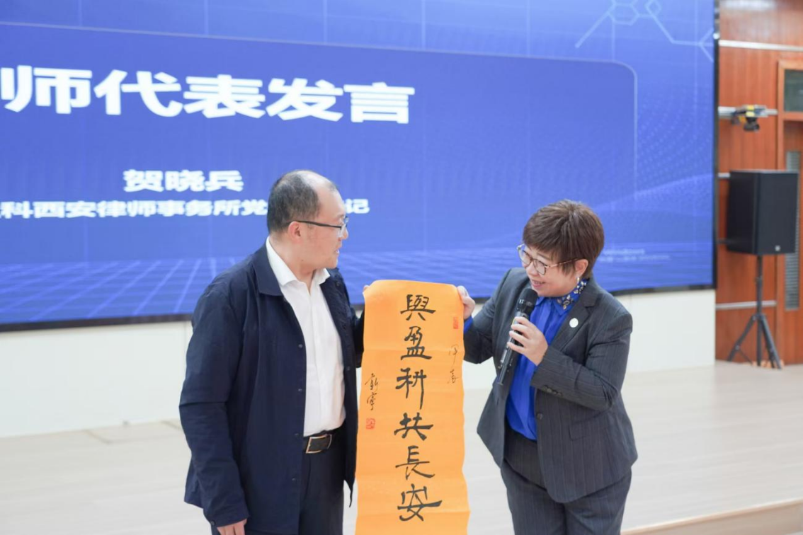盈科(西安)律师事务所党委副书记,高新区妇联兼职副主席贺晓兵作为导师代表发言,她表示,盈科律师事务所将继续同院校积极合作,为大学生提供更多的创业就业机会,并为澳门威尼斯人官网 赠送“与盈科共长安”的题字,彰显院所真挚深厚的友谊。