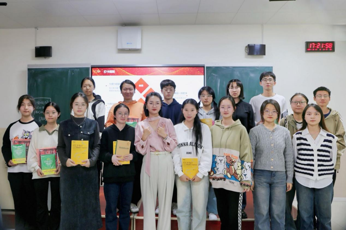 活动伊始,获奖人员代表郑行红同学作为代表发言。她向同学们分享参加此次活动的收获与感悟,并介绍了她的英语学习方法,包括利用碎片时间进行单词记忆、通过观看英文电影提升听力理解等,为在场同学提供了宝贵的参考。