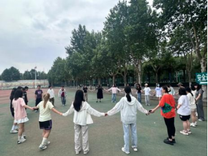 各班精心设计了多项互动活动,如“盲行”“解手链”“反向指令”等,同学们或在游戏的欢声笑语中感悟趣味竞技活动带来的乐趣,调节在学业压力下疲惫的身心;或在轻松氛围中探讨“学习和运动如何平衡”、“分工冲突如何解决”等引人深思的话题;或在思维的碰撞与反转中不断激发自身活力,凝聚班级协作的力量。