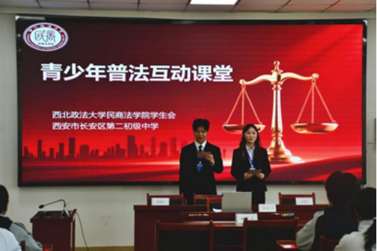 活动现场,宣讲团成员结合青少年成长特点,创新宣讲方式,科普法律知识。本次宣讲首先通过PPT宣讲,为同学们介绍法庭的基本形式,引导大家辨别身边的不法行为,并教会大家如何运用法律武器保护自身合法权益。宣讲团成员运用模拟法庭演绎的方式,既生动还原了青少年因盲目追星、轻信陌生人而陷入网络诈骗陷阱的真实场景,提醒同学们提高警惕、守护好自身财产安全,又彰显了法律权威,提升依法维权的意识与能力。