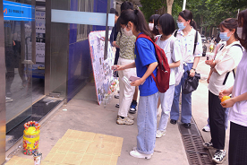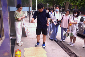 扣杯游戏要求同学们向地面投塑料杯,若投出的塑料杯与地面上已经摆放好的杯子扣在一起,则可获得奖品。这个小游戏难住了不少参与的同学,由于杯子较轻,易受风力影响,导致投掷点和最终的杯子着落点产生偏差。但同学们并没有就此气馁,而是进行了多次尝试。这个小游戏锻炼了心理素质,让同学们在屡次失败的体验中不断调整技巧和心态,同学们也在游戏中收获了乐趣。