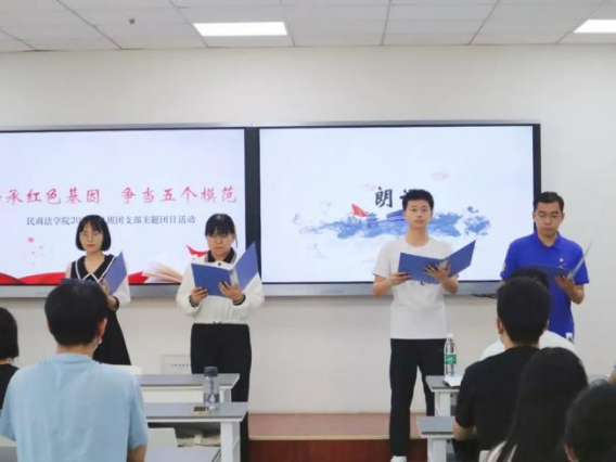 活动伊始,曹雨璇同学向出席本次活动的领导老师介绍了班级的成员构成、班团建设、学风建设、特色活动以及取得的主要成绩等内容。随后进行了主题团日活动第一个环节——习近平总书记重要讲话节选诵读,四位同学以诵读的方式带领师生学习了习近平总书记的重要讲话精神,声情并茂的诵读使活动氛围渐入佳境,赢得了老师和同学们的热烈掌声。