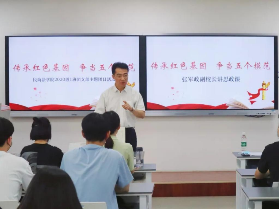 接着,张老师以“传承红色基因,争当五个模范”为题为同学们讲授思政课,首先,张老师指出了青年之于国家、社会及家庭的重要意义,鼓励同学们志存高远、不负韶华,答好自己的青春答卷。