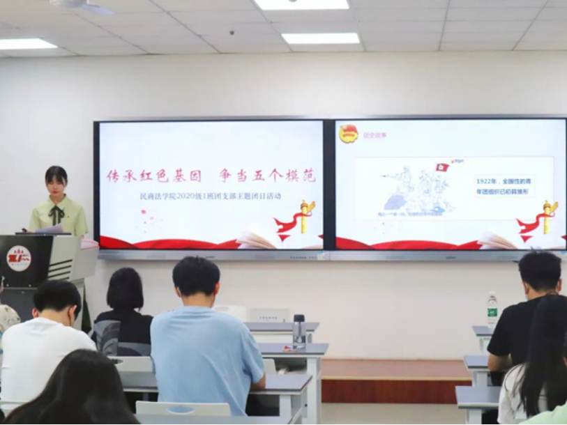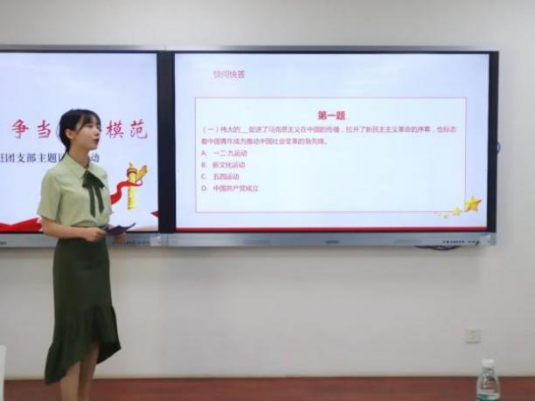 其次,张老师结合习近平总书记在庆祝中国共产主义青年团成立100周年大会上的重要讲话原文,带领同学们重温了共青团团结带领中国青年为实现中华民族伟大复兴的百年奋斗历程,为同学们深入分析了“五个模范”的深刻内涵,引导同学们从中汲取继续前进的智慧与力量。