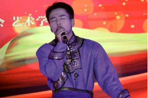此次活动由我院那尔斯同学演唱的歌曲《乌兰巴托的夜》拉开序幕,草原上的歌声一路飘到广袤的西北。开场舒缓悠扬的音乐将同学们代入辽阔寂寥的蒙古草原,随着低沉磁性的嗓音,我们仿佛看到野马驰骋于茫茫草原,雄鹰翱翔于漫漫长空,让我们感受到草原人民的热情与豪迈。美妙歌曲的背后是辛苦的付出,一个简单的转音、一次看似不经意间的声调,都是辛苦练习无数次的结果。