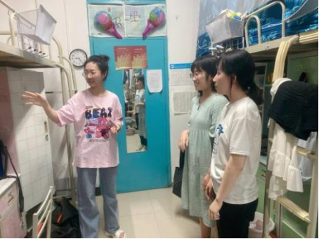 在检查期间,辅导员与同学们面对面亲切交流,了解学生住宿情况,关怀学生日常生活,关心学生身体健康。同时,辅导员们叮嘱同学们一定要做到勤通风、勤打扫,保持好宿舍环境卫生,防止细菌滋生和疾病蔓延。此外,辅导员们还特别提醒同学们,近日天气炎热,气温较高,同学们应注意防暑避温、饮食安全等内容。