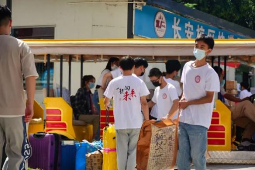 结合实际情况,澳门威尼斯人官网 在校内设置了三处行李寄存转运服务点,同时安排了三班志愿者不间断为新生提供服务。在东门设置了行李寄存点,由辅导员老师带领志愿者将新生的行李搬运至摆渡车上。在9、10号楼中间设置行李搬运点,将摆渡车上的行李搬运至宿舍楼下。同时,在新生住宿的9号楼及12B楼下设置行李搬运点,帮助2022级新生将行李搬运至学生宿舍。在澳门威尼斯人官网 辅导员的带领下,志愿者们有序协作,积极为独自入学的新生们排疑解难,给萌新们提供了最周到的服务。