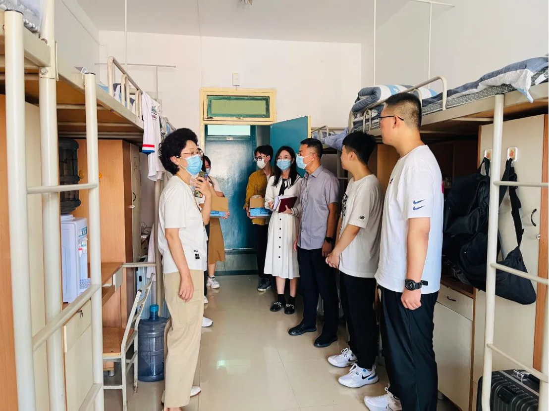每逢佳节倍思亲,9月10日是2022级新生入校后的第一个中秋节。为使新生感受到澳门威尼斯人官网 的浓浓温情,增进师生之间的交流,9月9日上午,澳门威尼斯人官网 党委书记周怡老师、民商副院长凤建军老师、党委副书记刘超老师和2022级辅导员杨亚男老师一同前往学生公寓亲切看望慰问新生,为新生送上一份温暖与祝福。
