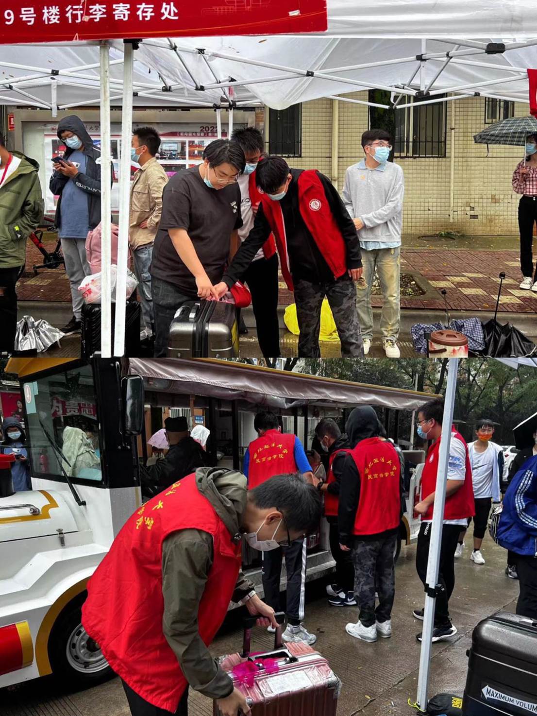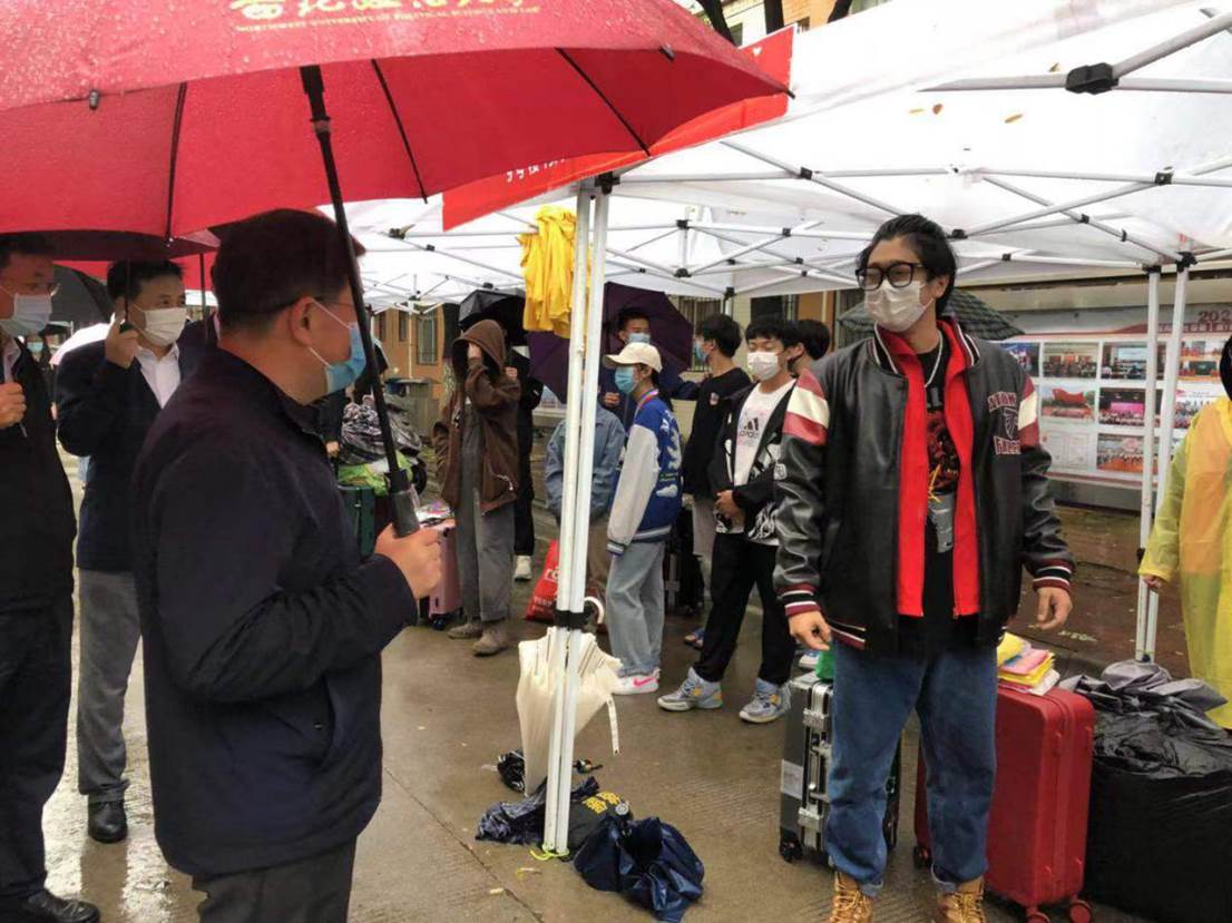 飒飒秋雨,天气渐凉。9月20日,澳门威尼斯人官网 正式迎来2022级第二批返校新生,阴雨绵绵未阻挡住第二批返校新生期待的步伐,也并未浇灭志愿者似火的热情。