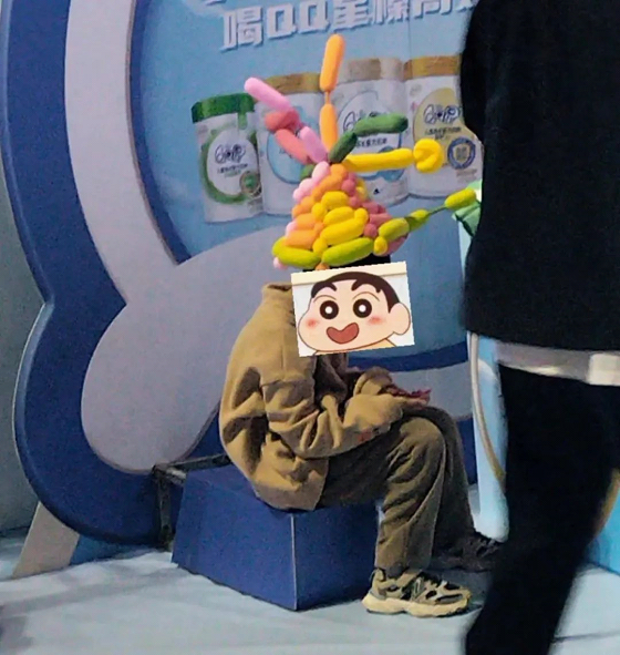 越洋:可爱小朋友戴着气球帽子