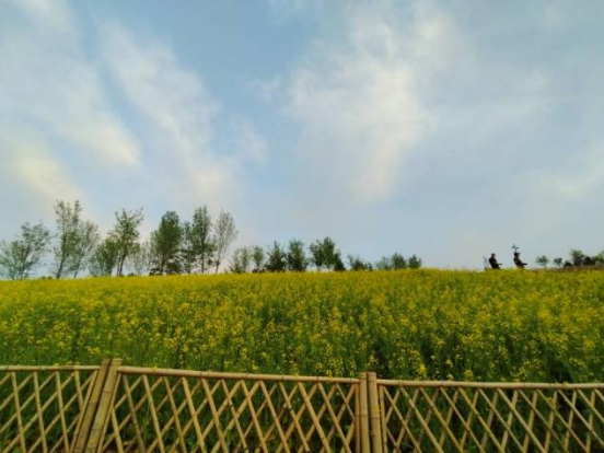 越洋:周和朋友一块去长安公园,成片的油菜花在淡蓝天空之下,