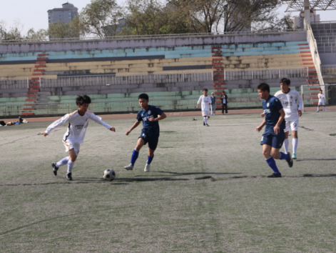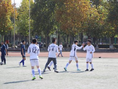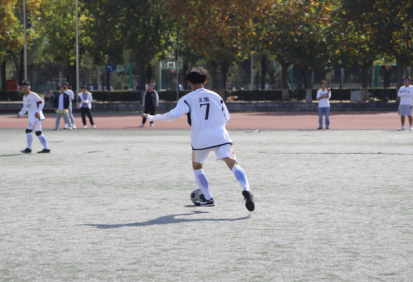 下半场开始,赛况愈发胶着,双方你追我赶,相持不下。灵活的战术和投入的状态彰显了我方球员对于胜利的渴望,7号队员王浩左挪右闪,多次完成一条龙过人,精湛的球技令人叹服;4号球员韩沛宸防守意识过人,多次在禁区前沿完成拦截,力挽狂澜。最终,两队以2-2的成绩打成平手