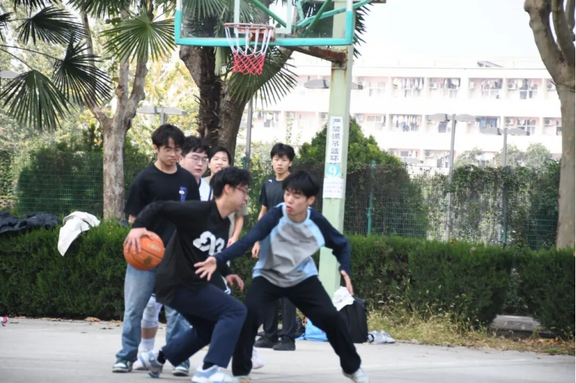 上半场,九号场地,24级a1联队默契配合,带着势如破竹的气势,突破重围,运球、挡拆、传球、上篮,一气呵成,投出一个漂亮的二分球;24级a2联队同样不甘示弱,努力严守阵线,紧咬比分。双方气氛逐渐焦灼,比赛走向高潮,双方不断灵活运球,调整策略。十号场地的比赛同样精彩,24级b1联队和25级b3联队也处在火热的攻防中。24级b1联队斗志昂扬,主力抓住机会,队员个个身姿矫健,接连拿下比分。25级b3联队同样配合默契,不断调整策略,灵活运球,争分夺秒地拿下每一次得分的机会。