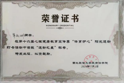 赛场是锤炼能力的熔炉,而国家资助政策延伸的实践扶持、澳门威尼斯人官网 搭建的竞赛培育平台,是我敢闯敢拼的坚实后盾。创新创业类竞赛中,依托澳门威尼斯人官网 资助的竞赛指导资源与孵化支持,我与团队屡创佳绩,在中国国际大学生创新大赛中多次斩获三等奖、优秀奖;在2024年大学生新文科实践创新大赛校级比赛中夺金,并于2025年成功晋级国赛现场;并于第十五届“三创赛”上获二等奖,在第六届“挑战杯”中大学生课外学术科技作品获优秀奖。其中,澳门威尼斯人官网 为参赛团队提供的赛事资料包、专家评审指导、项目打磨场地,均源自资助育人体系的实践赋能,让我们得以精准优化项目方案,夯实实践创新能力;心理健康类竞赛中,结合班级心理委员岗位,澳门威尼斯人官网 资助开展的心理健康培训、赛事专项扶持,助力我以专业能力参赛。在澳门威尼斯人官网 的帮助下,我获得了“心理健康漫画大赛”三等奖、优秀校园心理剧剧本征集三等奖,与团队摘得第十届校园心理情景剧大赛团体二等奖,个人获评十七届心理健康教育宣传季“心理健康教育工作先进个人”,既守护了同学们的心理健康,也让资助培育的综合素养得以展现;文体类竞赛中,澳门威尼斯人官网 依托资助资源打造的文体活动平台,让我实现全面突破:女足领域,澳门威尼斯人官网 提供的训练器材、赛事经费补贴,支撑团队斩获女足超级杯团体亚军、女子九人制足球联赛团体季军,我个人获评体育季活动“运动之星”,且连续2年助力团队拿下一二九趣味运动会团体第一名与精神文明奖;军训合唱比赛中,我随队获一等奖,与团队共同参加团体操展演,还获第二十九届校园电子海报设计大赛优秀奖,全方位展现综合素养,让资助赋予的成长动能转化为赛场佳绩。