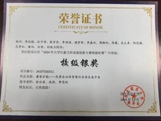 在实践与竞赛中,我保持进取姿态,不断锤炼综合能力。军训期间,我和团队一起参加澳门威尼斯人官网 板报比赛,获得三等奖;每晚参与合唱比赛排练,在军训合唱比赛中荣获一等奖,用辛勤付出换得了丰富的回报;初入大学,我加入澳门威尼斯人官网 青年志愿者大队和法律服务中心,在“爱加倍”活动中陪伴残障青少年,在长安区医院协助导诊,在社区表演普法情景剧,参与模拟法庭……在志愿活动中寻找自我价值,在奉献中体会责任与价值;我参加2024年大学生新文科实践创新大赛,在负责人带领下围绕“民营企业防贪”课题开展调研,查阅资料、撰写报告、制作PPT,最终获得校级银奖;参加2025年大学生创新训练计划,积极与团队配合并获得省级立项;同时,在模拟外交谈判大赛2025年春季赛事中获得个人三等奖,强化了谈判和沟通能力;假期里,我带队参加大学生暑期“三下乡”,在校史发源地延安和西北较偏远地区挖掘校史文化,丰富校史资源库,和团队成员携手推动红色校史可视化;此外,我还积极进行体育锻炼,争取加入运动会开幕式方阵的机会,参与乐跑活动……这些经历无一不培养了我分工协作、高效沟通的能力,让我学会精准定位自我优势,锤炼竞技心态与抗压能力,在解决问题、应急应变中提升综合素养以回应社会和国家的需求。