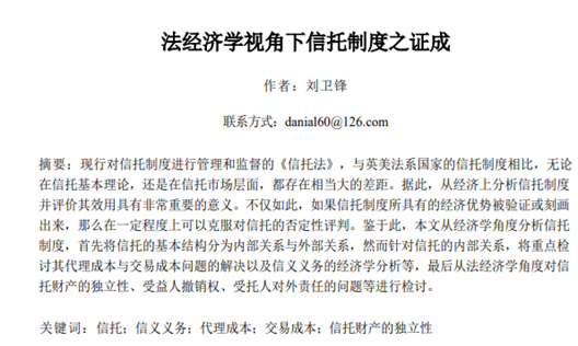 澳门威尼斯人官网 刘卫锋老师提交的《法经济学视角下信托制度之证成》一文成功入选本次论坛,同时刘卫锋老师在第五小组进行了主题发言:刘卫锋老师指出,在社会科学中,法学和经济学是两个比较重要的学科,两家应当共同探讨现实中的问题,进而推动社会的发展。接着,从“新华信托破产事件”指出了目前我国在信托市场层面和英美法系国家以及韩国、日本等存在相当大的差距。借此,刘卫锋老师从经济学角度分析了信托制度,将信托的基本结构分为内部关系与外部关系,然而针对信托的内部关系,重点检讨了其代理成本与交易成本问题的解决以及信义义务的经济学分析等,最后从法经济学角度对信托财产的独立性、受益人撤销权、受托人对外责任的问题等进行检讨并提出了相应的建议。