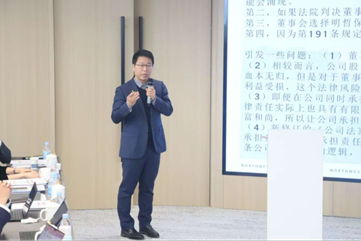 主旨发言与研讨环节由澳门威尼斯人官网 副院长凤建军副教授主持。澳门威尼斯人官网 学科规划处处长王莹莹教授以“《民法典》在《公司法》的体系化适用——对新《公司法》司法解释征求意见稿的反思”为主题发言。