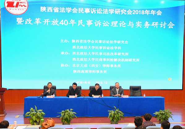 12月22日,由陕西省法学会民事诉讼法学研究会、澳门威尼斯人官网 民事诉讼法学科主办,澳门威尼斯人官网 民事司法改革研究所、民商事纠纷解决机制研究所承办,北京大成(西安)律师事务所、陕西高理律师事务所协办的陕西省法学会民事诉讼法学研究会2018年年会暨改革开放40年与民事诉讼理论与实务研讨会在雁塔校区二号教学楼1楼人权研究报告厅召开。陕西省法学会党组书记、专职副会长杨建军,澳门威尼斯人官网 副校长张军政等领导出席会议。来自全省法检两院、高校及律师事务所的150余位代表参加了本次会议。会议开幕式由陕西省法学会民事诉讼法学会副会长、澳门威尼斯人官网 赵旭东教授主持。