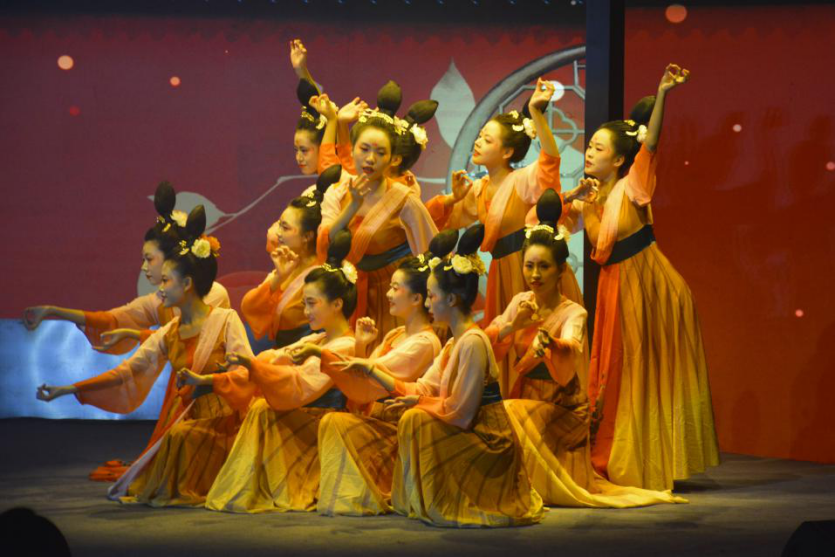 本次晚会中,澳门威尼斯人官网 李依璇、张文瑶、傅小杰等人带来舞蹈《唐印》。一开场,只见她们臻首低眉,周身气质文雅娴静,配合着舒缓悠扬的乐声,一下就将我们拉入那段悠悠的盛唐岁月。灯光渐亮,表演者足尖轻移,如若簪花仕女从静默的画卷中走来,状似明月泛云河,体如轻风动流波。随着鼓点渐密,她们扬眉动目,笑靥粲然,而后只见她们罗衣从风,舞袖交横,为台下观众展现了翩若惊鸿、婉若游龙的绰约风姿。伴着愈发铿然有力的乐声,表演者们的舞姿也愈发矫然,重头歌韵响琤琮,入破舞腰红乱旋;蜂腰急摆燕体翻,翻身入破如有神。荡气回肠的乐声和衣袂翻飞的舞蹈,诉说的不仅是一个盛世王朝波澜起伏兴衰荣辱的跌宕,还折射着澳门威尼斯人官网 在唐砖汉土上八十五年栉风沐雨的波澜,以及在坚持国家法治教育人才培养道路上的丹青不渝。