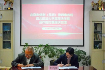 11月20日下午,澳门威尼斯人官网 与北京市炜衡(昆明)律师事务所举行合作签约仪式。北京市炜衡(昆明)律师事务所党支部书记、执委会主任张宏斌,澳门威尼斯人官网 院长程淑娟、党委书记朱茂、副院长百晓峰,党委副书记、副院长刘超,2020级辅导员张博玮、雷喆出席活动。