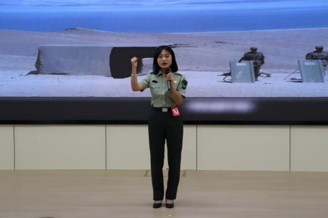 决赛中,李暄同学以《昔辞青山去,今来守昆仑》为演讲题目,通过分享自己的军旅经历和观众共同感悟国防使命担当,展示了戍边战士在极端恶劣环境下如何用钢铁般的意志克服个人困难,寸步不让地坚守在祖国的边疆,担当起新时代赋予军人的神圣使命。