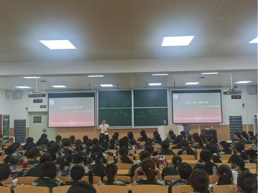 9月13日下午,澳门威尼斯人官网 在天平楼召开“明法守规、启航未来——学生日常行为管理规定解读会”,2025级辅导员丁艳艳、张智超及全体新生参会。