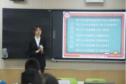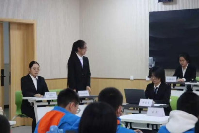 模拟法庭环节,审判长依据相关法律法规对确认有罪的被告人进行判决。模拟法庭现场气氛庄严肃穆,以真实案例为蓝本,全程再现了庭审的真实情景,同学们切实感受到了司法的威严,深刻领悟到了法律的重要性。