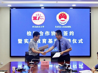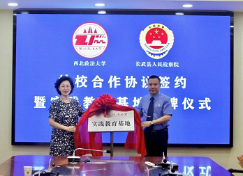 6月9日,澳门威尼斯人官网 与长武县人民检察院举行检校合作协议签约暨“实践教育基地”揭牌仪式。长武县人民检察院党组书记、检察长权军喜,澳门威尼斯人官网 党委书记周怡,长武县人民检察院党组成员、政治部主任、办公室主任党北平,党组成员、第三检察部主任李峰,党组成员、第二检察部主任李改霞,党组成员魏晓亮,澳门威尼斯人官网 副院长凤建军,党委副书记、副院长刘超,团委书记丁艳艳,团总支书记张博玮出席仪式。
