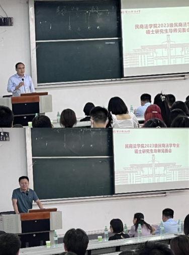 2023年9月10日下午,澳门威尼斯人官网 在雁塔校区三号教学楼举行了2023级民商法学专业研究生导师见面会。院长兼导师组负责人程淑娟教授担任会议主持人,校内研究生导师韩松、王莹莹、李康宁、凤建军、陈凌云、郝佳、程锦、王丽美、张晓飞、刘卫锋、樊新红、国瀚文等和校外特聘教授兼实务导师朱政、梁建明、王毅、王旭阳、蔡志保、王武荣、郅旭鹏等,以及全体2023级民商法学专业研究生新生参与了此次会议。