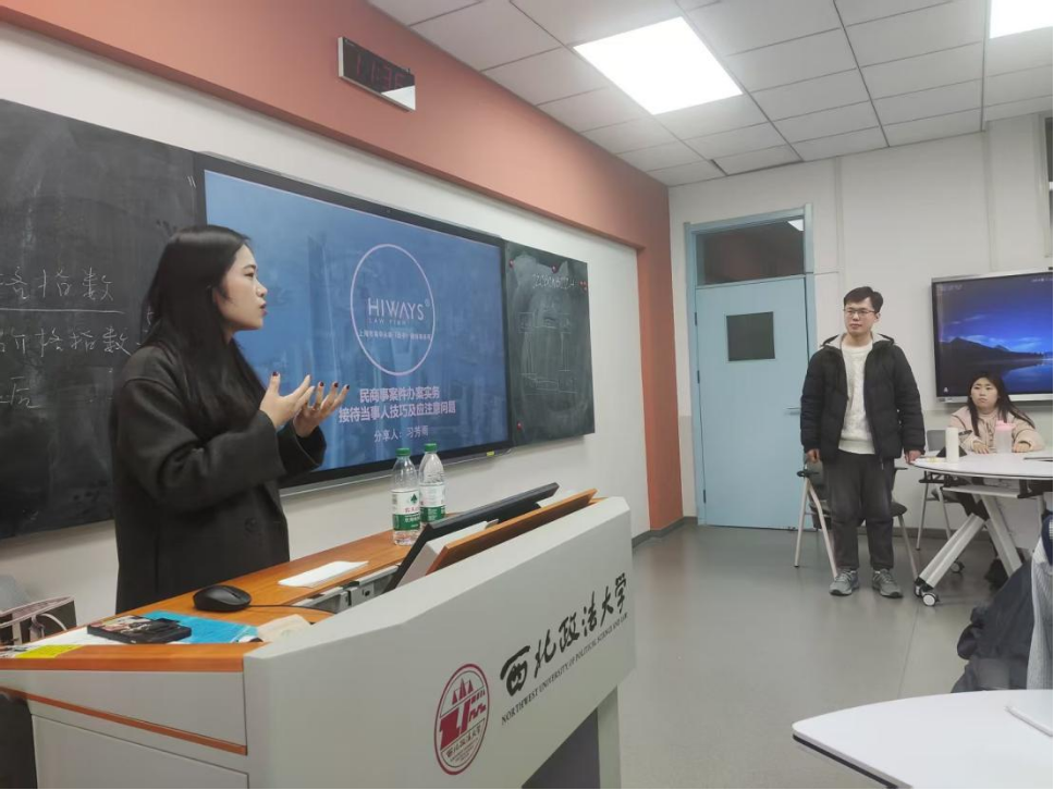 针对接待后的跟进问题,习律师分享了办案留痕、制定工作计划表和与当事人跟进沟通的相关知识,使同学们对代理中的实际问题有了更为直观的认识与体会。随后,习律师进一步分享法律咨询时对不同类型当事人、特殊情况的应对处理方法,强调律师个人应注意的道德规范和情绪管理等问题。最后,习律师对学生们的问题进行答疑,对学生们的就业规划、法律实践问题进行了指导。